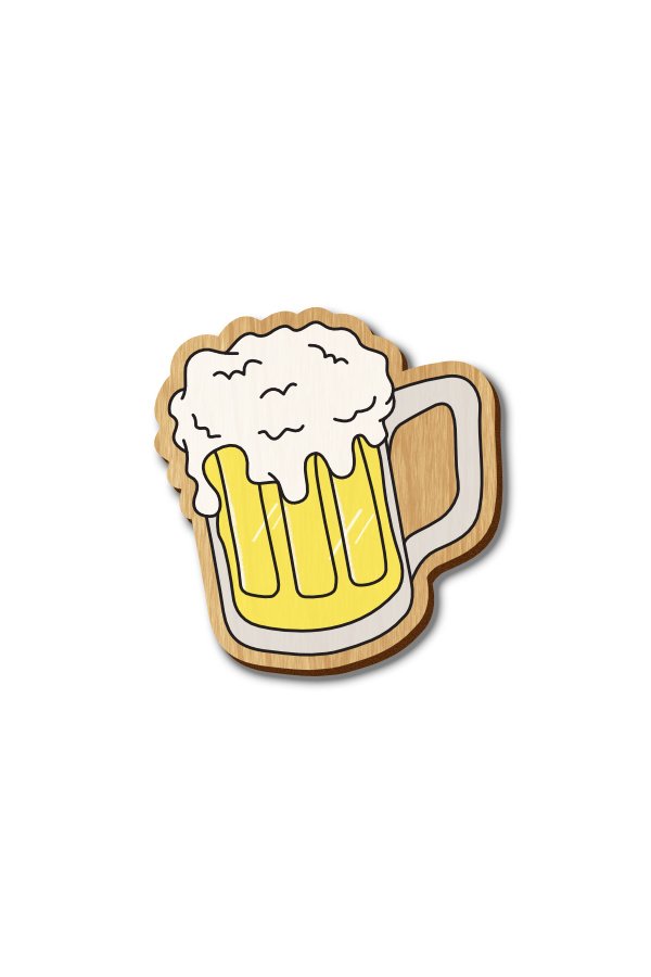 Beer Mug – Hand-painted Wooden Pin is made from 4 mm sustainably sourced solid cherry wood and hand-painted with detail.
