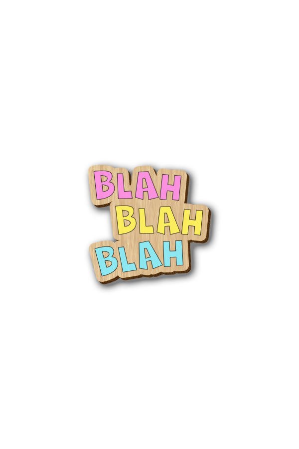 Blah Blah Blah Text – Hand-painted Wooden Pin is made from 4 mm sustainably sourced solid cherry wood and hand-painted with detail.