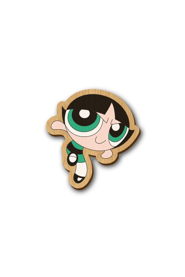 Buttercup Powerpuff Girls – Hand Painted Wooden Lapel Pin/ Brooch which is made from 4 mm sustainably sourced solid cherry wood and hand-painted with detail.